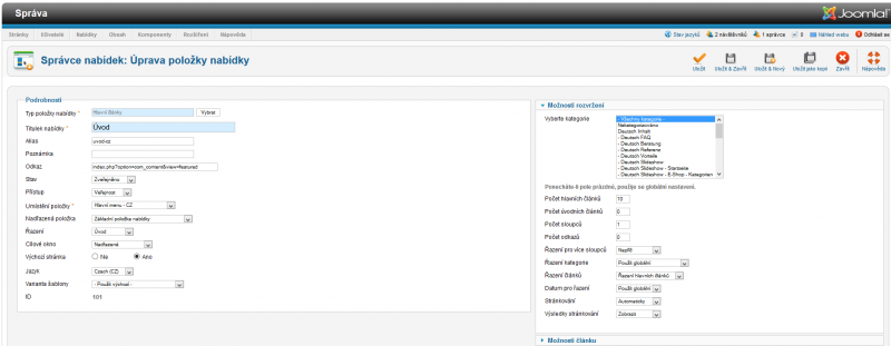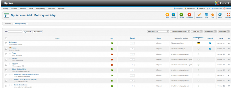 snažíme se s kamarádem přeložit web www.vretenovesekacky.cz do němčiny, ale nějak pořád nefunguje modul "Language switcher". Aktivovali jsme plugin Language Filtr a nainstalovali němčinu. Dále jsme vytvořili kategorie pro český a německý obsah. Poté bylo vytvořeno menu pro CZ tak pro DE a pro VŠE. Přesně podle návodů. V každém hlavním menu pro daný jazyk je zvolena hlavní stránka (symbol vlajky). Pokud nyní přejdu na adresu www.vretenovesekacky.cz/de/ opravdu se zobrazí hlavní stránka pro němčinu pokud zadám www.vretenovesekacky.cz/cs/ zobrazí se hlavní stránka pro češtinu. Teď k problému, když je přidán modul ,,Language Switcher", který zobrazuji úplně dole v patičce na webu (ikony vlajek). Odkazy na vlajkách vůbec nezmění jazyk, navíc je v odkazu nějaká adresa ("strana-5" nebo "strana-6"). Nedokáže mi někdo vystvětlit proč to funguje takhle špatně? Do příloh jsem vložil nějaké screeny z administrace. Děkuji za Vaše reakce..MB