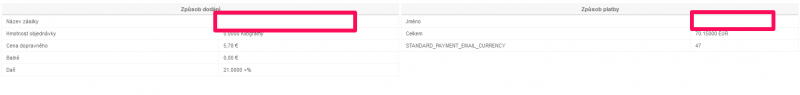 Poslední dobou mi začíná haprovat eshop. Největší problém je vtom, že mi chybí nějaké textové informace. Napšíklad ve fakturaci úplně scházejí názvy způsobů plateb a dopravy zboží (viz příloha). V administraci plateb a dopravy jsem nic neměnil a vše se tváří srpcávně. Mám podezření, že za to může nějaké rozšíření třetích stran. Neřešili jste někdo něco podobného? Nemáte nějaký tip, co by to mohlo způsobit?