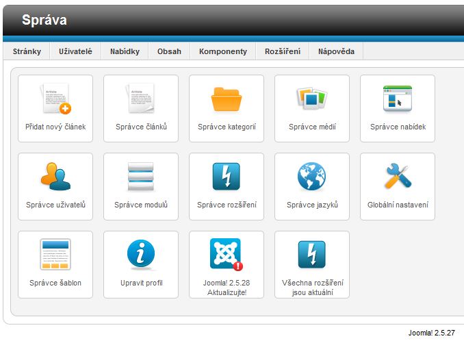 Zdravím. Mám dotaz ohledně aktualizace joomly. Mám několik webu, jsou v podstatě stejně instalované a přesto se chovají jinak. Jde o aktualizaci Joomly. Přihlásím se na jeden web a ten hlásí "Joomla! je aktuální" a dole je verze Joomla! 2.5.20 (k dnešnímu dni by mělo být 2.5.28) na druhém hlásí též verzi 2.5.20 ale už nepíše že je aktuální, ale aktualizujte a na třetím hlásí že je 2.5.27 a též vyzívá k altualizaci. Jakto, že ten první hlásí stále aktuální verzi a musím ho aktualizovat ručně?? Nevíte kde je chyba?? A není to jediný web, který mi to dělá. Přikládám foto.