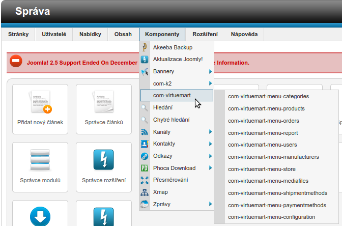 Ve snaze pročistit systém jako přípravu k přechodu na vyšší verzi jsem se jal uklízet. Vzal jsem to tak že odinstaluji už nepoužívané komponenty a s tím zbytkem se už nějak popasuji. Tak jsem chtěl odinstalovat Virtuemart a K2. Odinstalace "proběhla" v pořádku, ALE! V nabídce Komponenty stále zůstávají položky a odkazy v nich. Samozřejmě po kliknutí na ně končí vše chybou o nenalezené stránce. Taky jsem zaregistroval že ve správě zůstávají desítky pluginů vztahujících se k VM a u těch zcela evidentně nedošla k odinstalaci - bohužel hlavní komponenta se odinstalovala, ale na tuhle drobotinu tak nějak pozapomněla. Jde to nějak odstranit? Nebo to prostě ignorovat, protože po dokončení upgradu na novější verzi už to tam nebude