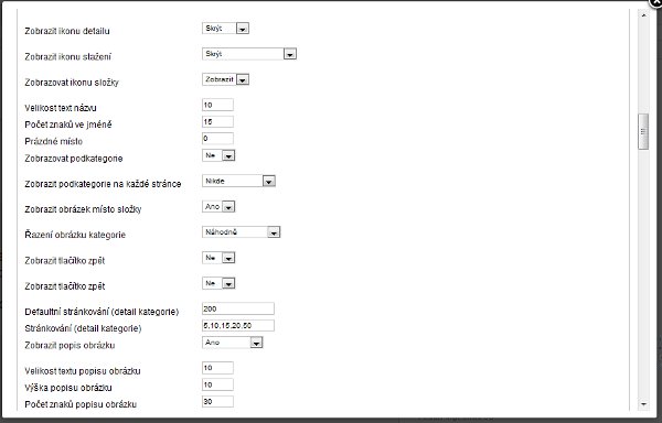 Přikládám i nějaké screeny nastavení, u detailu galerie mám schválně vysoké číslo, protože se mi zobrazí jinak jen fotky podle tohoto limitu, ale odkazy na stránkování už ne. Stejný problém je i u zobrazení všech galerií.