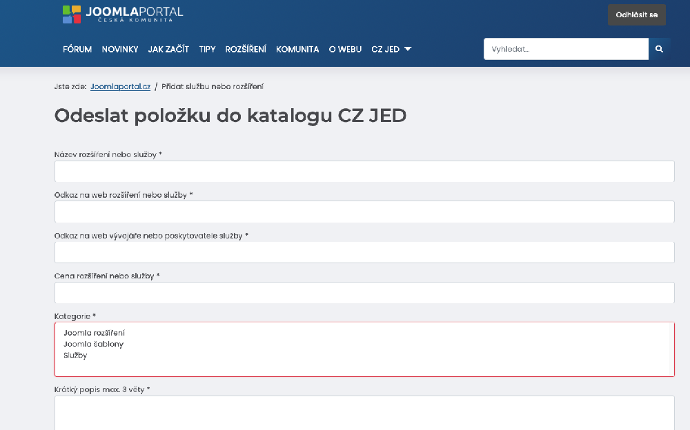 - chyba tokenu, když vkládám zápis do katalogu jako nepřihlášený (to je obecná chyba na celém joomla portále již od spuštění a nebyla ještě opravena - viz nutnost dvojího přihlášení v diskusi o nové verzi joomlaportalu)