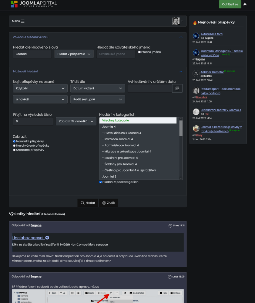 Také při vyhledávání ve fóru se sice zobrazí příspěvky, ale nemají většinou uvedené téma s proklikem, takže je to trochu "mrtvá" informace.