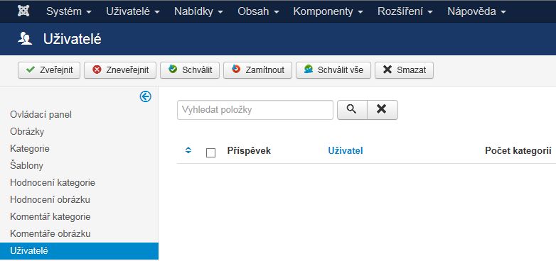 Také v Možnosti Phoca Gallery - záložka Uživatelé je třeba například povolit zobrazení Ovládacího panelu atd.