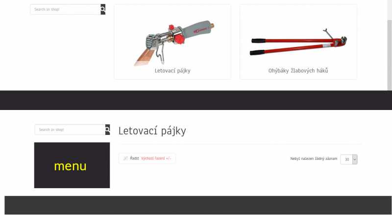 - kleště (po rozkliknutí chci menu speciálně pro tuto podkategorii)