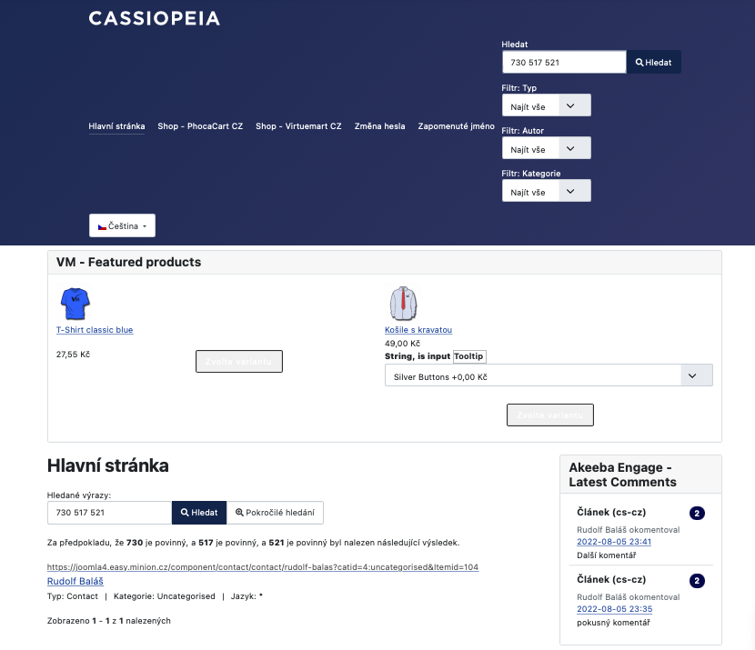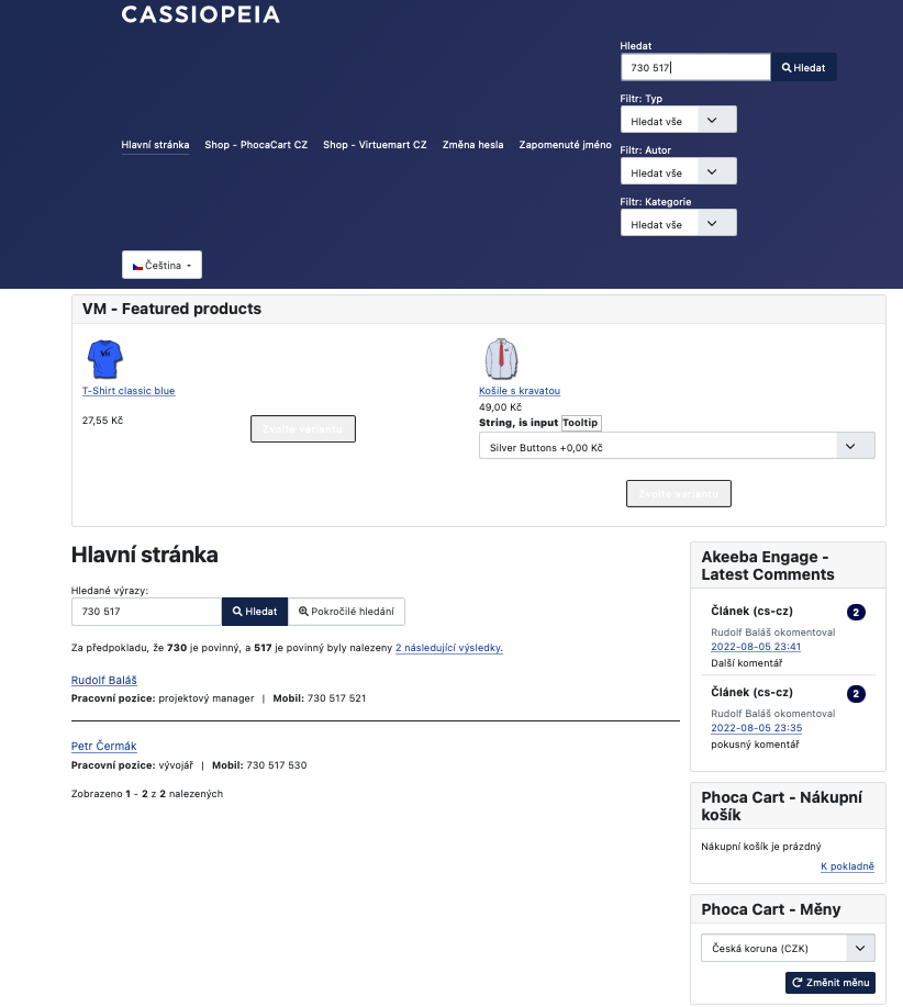 Donutil jste mne si vytvořit kontakt na webu s telefonem a normálně vyhledání podle telefonu v Joomla funguje.