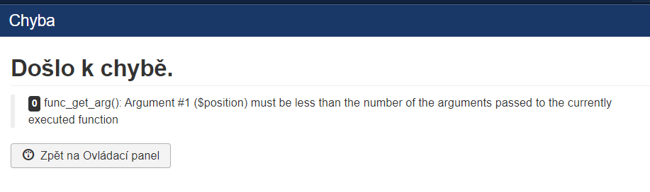 Zpět na Ovládací panel0 func_get_arg(): Argument #1 ($position) must be less than the number of the arguments passed to the currently executed function