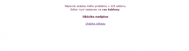 U JCE editoru pozadí nevidím vůbec, ale i při nastavení CSS soubor šablony nevidím v editoru text tak, jak je na stránkách - jiné písmo, jiné nadpisy, jiné barvy odkazů (základní modrý), mezery, ... jediné, co je správně je barva písma.