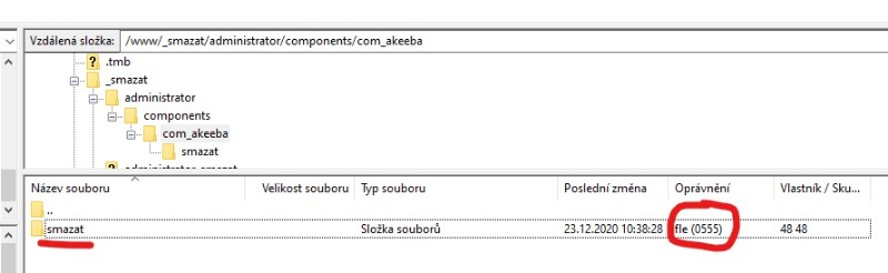 Jo a zkoušel jsem to smazat jak přes FTP klasického klienta (FileZilla), tak i přes webové rozhraní nějakého FTP klienta.