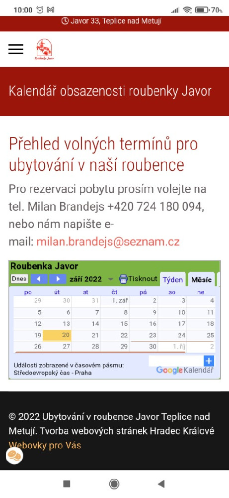 Zákazník si ve svém Google kalendáři pouze zaškrtne datum pro obsazeno. Víc nepotřebuje. Toto řešení naprosto vyhovuje, až na to zobrazení na mobilu.