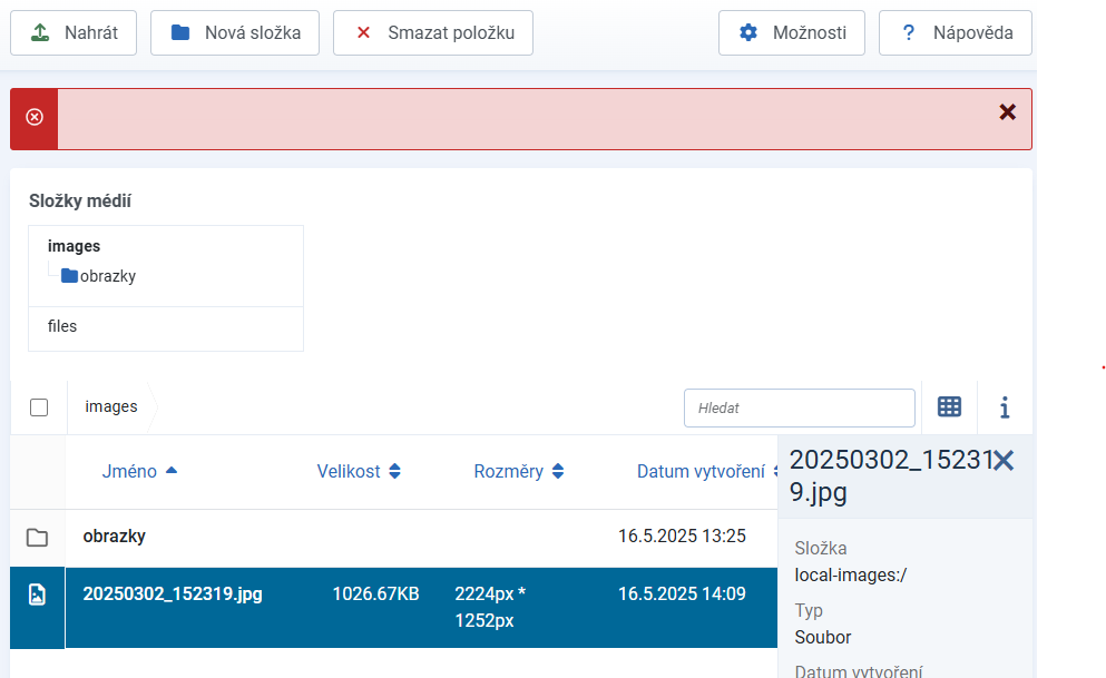 No a teď jsem zjistil, že je asi problém s ukládáním/zobrazením "médií". Vše se tváří, že se bez problému nahraje (na serveru jsou nahrané) i se zobrazí v seznamu, ale po novém otevření "Médií" se zobrazí prázdný seznam. Při pokusu nahrát již nahraný soubor, tak oznámí, že je nahrán a zda ho má přepsat.