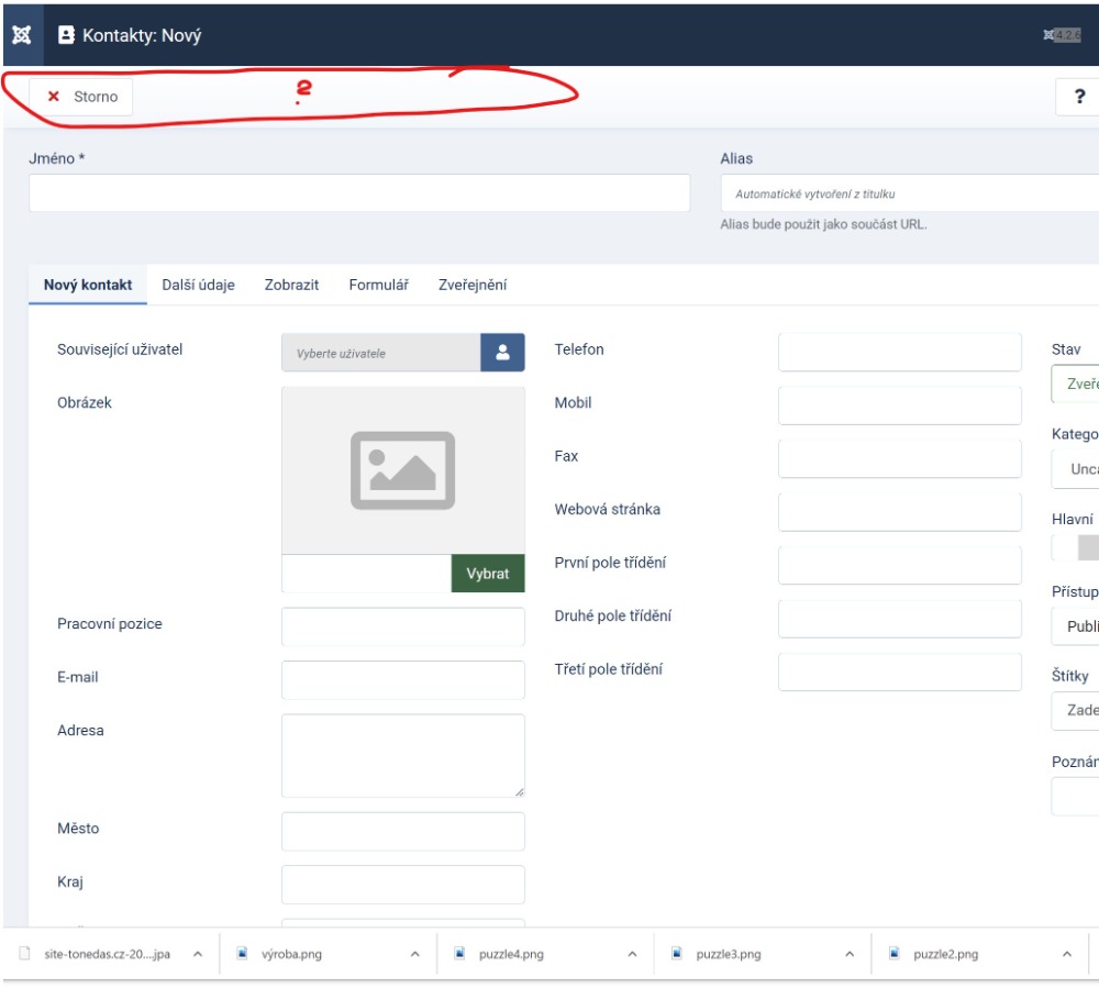 Když chci přidat kontakt, tak vyplnit všechno jde, ale chybí možnosti jako uložit, uložit a zavřít atd. Je tam jen možnost STORNO.