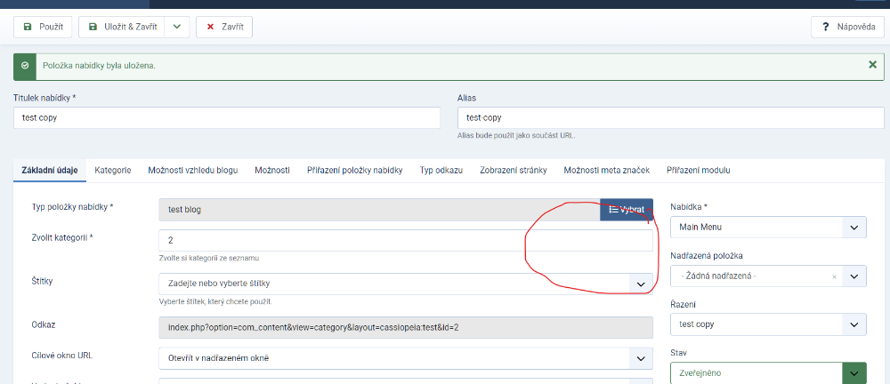 Mimochodem, existuje kategorie s ID 2 a je opravdu zveřejněná a patří komponentě com_content?