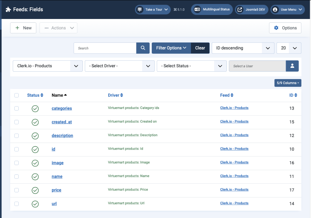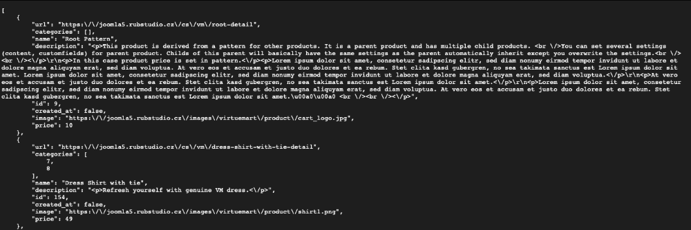 - feed typu VirtueMart Products (Category ids, Created on, Description, Gtin, Id, Image, Mpn, Name, Price, Sku, Url)