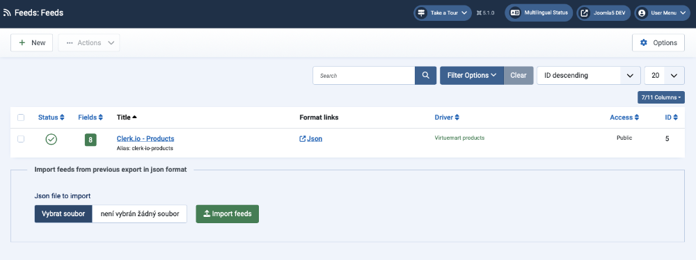- export / import feedů ve formátu json == duplikace feedů