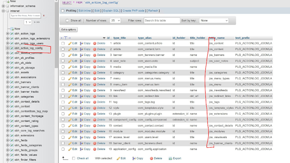 V databázi v tabulce obh_action_log_config stále odkazoval na tabulky s předponou jos_