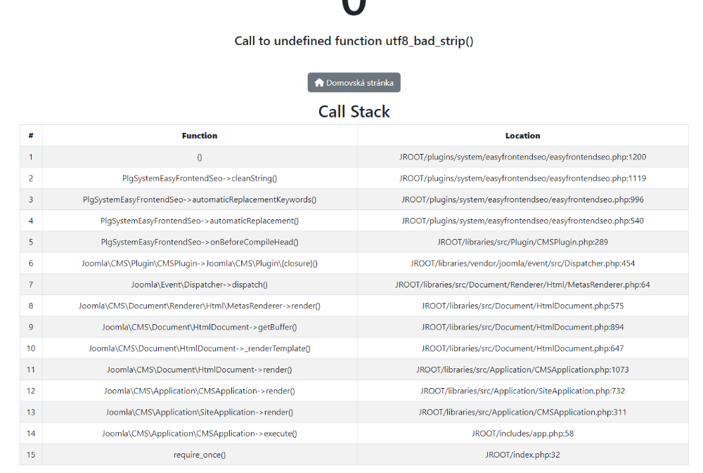 Zapněte si režim ladění chyb, aby byla ta chyba vidět celá i s podrobnostmi. Funkce utf8_bad_strip() v Joomle 5 stále je, zřejmě tedy šablona něco volá nějak špatně.