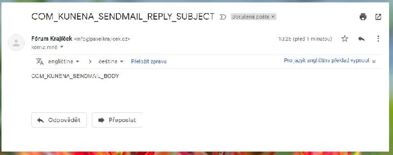 Takto chodí některým uživatelům emaily z Kunena (mnohým nechodí vůbec):