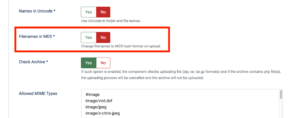 1. Nová možnost: změna názvů v MD5 hash při nahrávání souboru