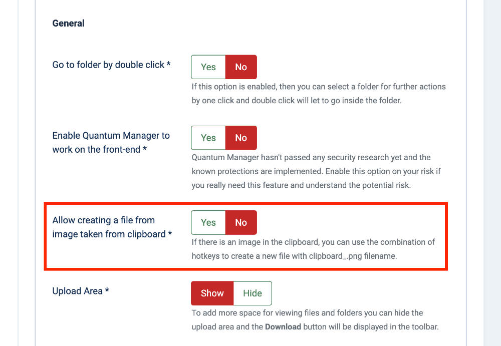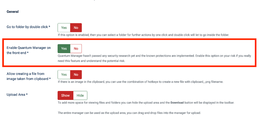 2. Nová možnost: povolit Quantum Manager na front-endu webu