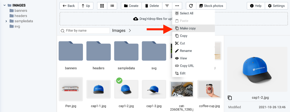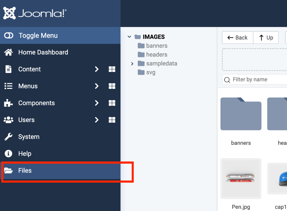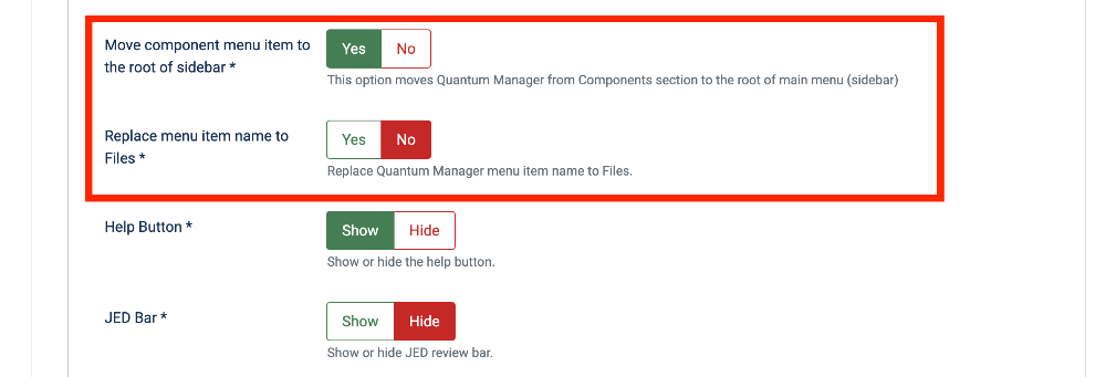 8/ Možnost Joomla 4: můžete přesunout položku nabídky z "Komponenty" do hlavní nabídky v postranním panelu. Existuje druhá možnost, která umožňuje přejmenovat položku nabídky z Quantum Manager na Files.
