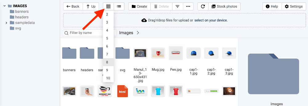 7. Režim mřížky rozšířen na 10 položek na sloupec