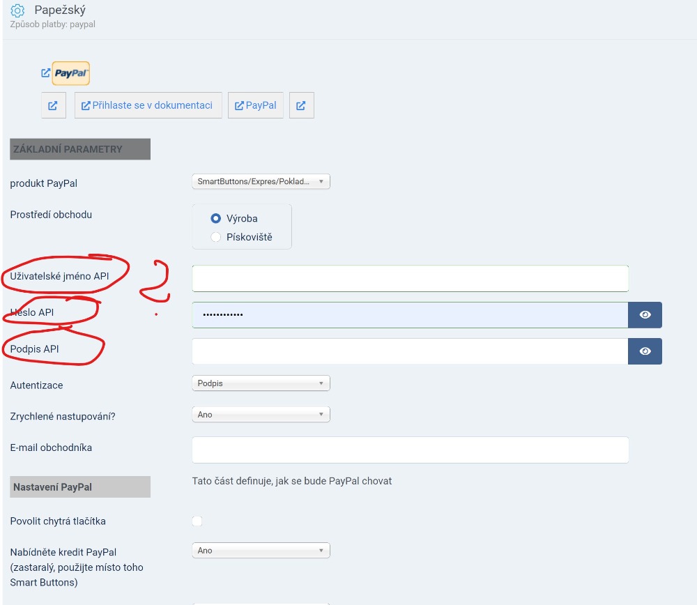 Poradíte někdo, jak zprovoznit PalPal platby, kde vzít ty údaje? Všechny návody jsem přečetla, stejně se mi to nepodařilo, jen jméno a heslo pro režim na vyzkoušení. Ale pro ostrý režim to tam prostě není.
