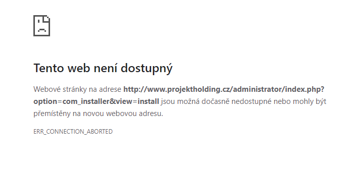 Chyba ERR_CONNECTION_ABORTED s velkou pravděpodobností není vůbec způsobena Joomlou, ale serverem, je to tedy pravděpodobně nějaké omezení hostingu.