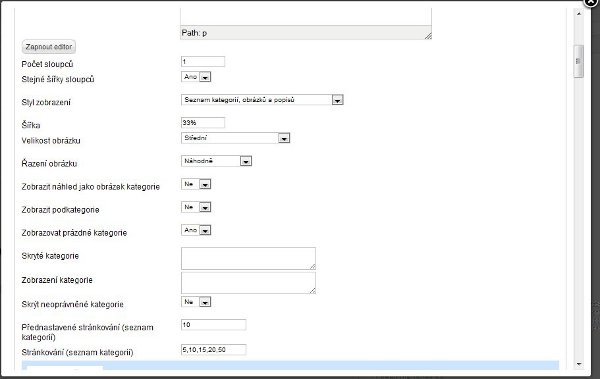 Přikládám i nějaké screeny nastavení, u detailu galerie mám schválně vysoké číslo, protože se mi zobrazí jinak jen fotky podle tohoto limitu, ale odkazy na stránkování už ne. Stejný problém je i u zobrazení všech galerií.