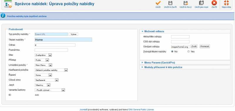 rád bych se zeptal, ikdyž pravděpodobně zvláštní dotaz. Dá se nějak v joomle 2.5 nastavit, aby se místo odkazu v menu objevoval obrázek/ikonka? Rád bych místo textové položky ''Domů'' dal ikonku ''domečku'', která by sloužila obdobně jako odkaz. Něco jsem objevil v detailu položky menu ''link type options'' kde možnost nahrání obrázku je - bohužel jsem nepřišel na to jak to zprovoznit. Děkuji