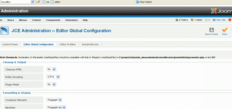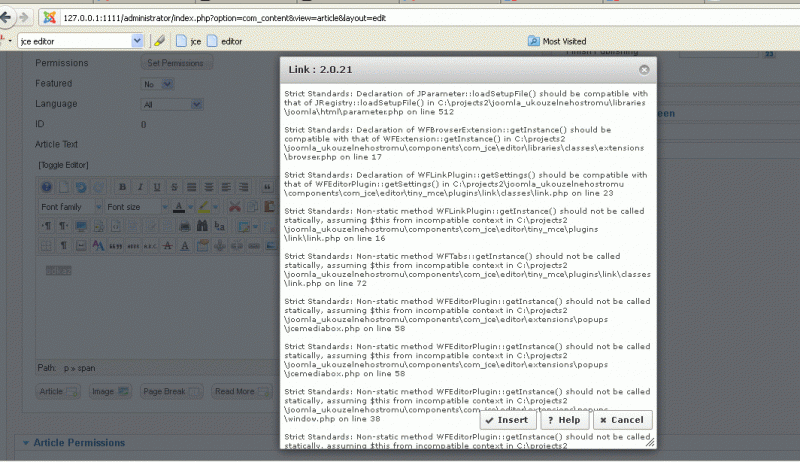 JCE editor nefunguje - spousta chybových hlášek