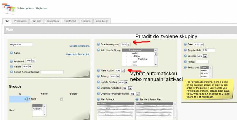 Kdy registrace do kategorie A normální a automaticky. Bude mít přístup do všech sekcí pro uživatele A