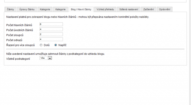 Ještě jednou připomínám, nastavení najdete v POLOŽCE MENU, globální nastavení v Možnostech Správce článků vám v některých nastaveních ovlivní pouze nové položky menu a ne ty stávající!