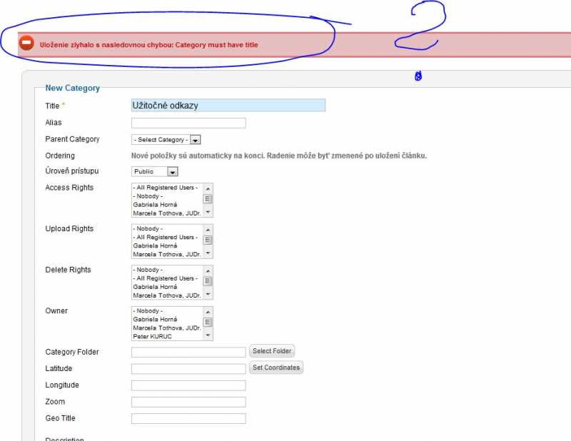 pri vytvárani kategorie mi vypíše : Uloženie zlyhalo s nasledovnou chybou: Category must have title - aj ked title zadam... nechapem kde je chyba, dúfam že som niečo nepokašlal pri databazach alebo čo... nvm