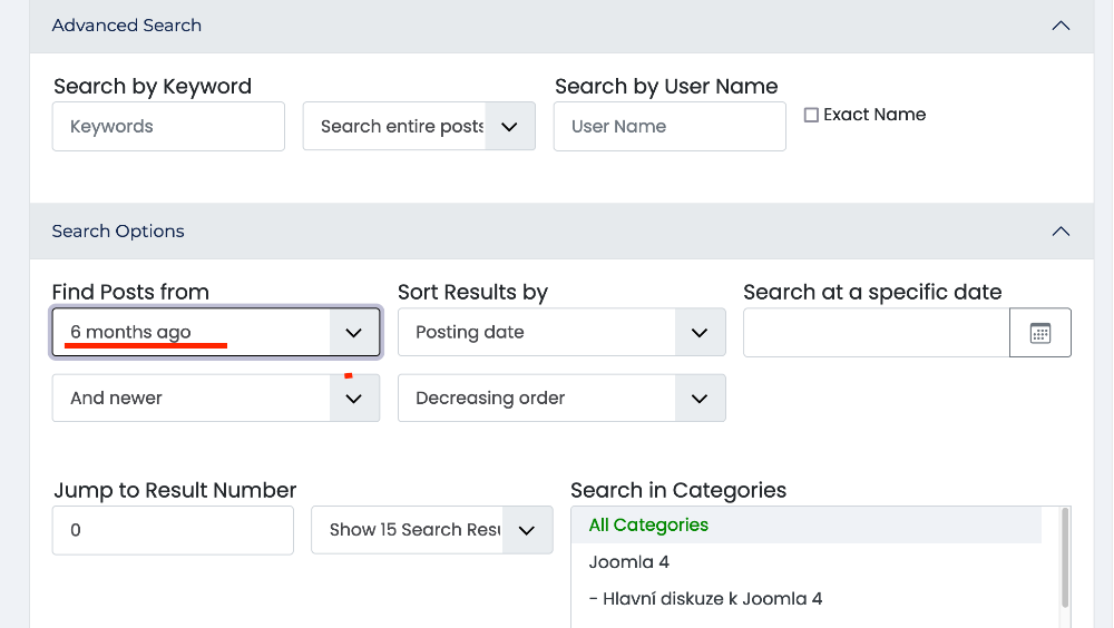 Doufám, že jsem správně pochopil vaši otázku. Existuje období hledání, které je zvoleno na 6 měsíců. Můžete si vybrat možnost „kdykoli“ a získat rozšířené výsledky vyhledávání.Bude se něco dělat s vyhledáváním na fóru? nejde nic rozumně najít. Vypíše to jen pár odpovědí, ale téma se rozkliknout nedá.