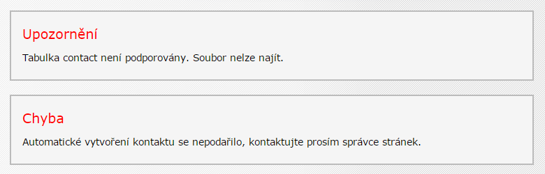 Pokud je to hláška Joomly, podívejte se do nastavení pluginu User - Tvorba kontaktů, pokud jej nepotřebujete, vypněte jej.