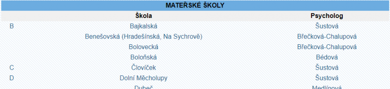 Jde mi o to, aby to vypadalo nejak podobne, a jednotlivé položky byly odkazové na profily školy a psychologů?
