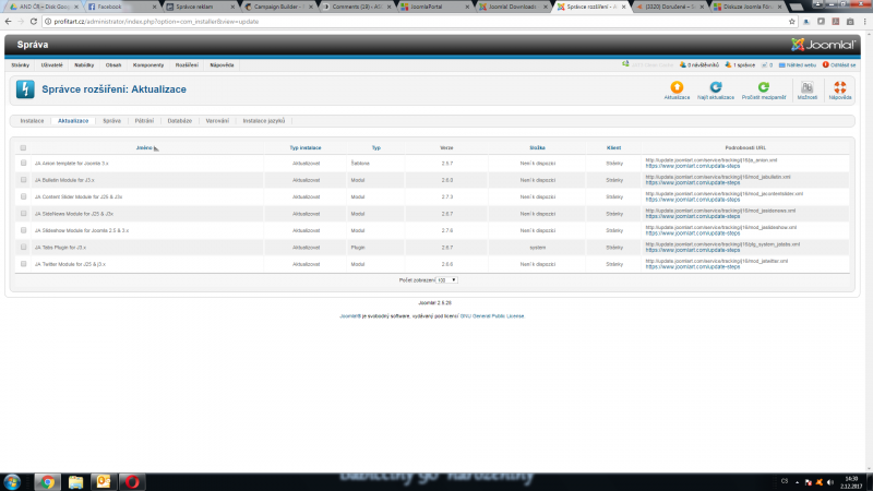 Zároveň již hodně dlouhou dobu se mi objevujíc na administrátorském rozhraní aktualizace, které ovšem nejdou aktualizovat a ani nijak poté nezmizí - viz příloha.