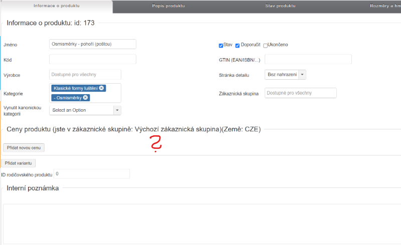 - oprávnění administrátora zda může editovat cenu, ale to by měl být nesmysl, pochybuji že Vám z ničeho nic někdo tyto práva omezil