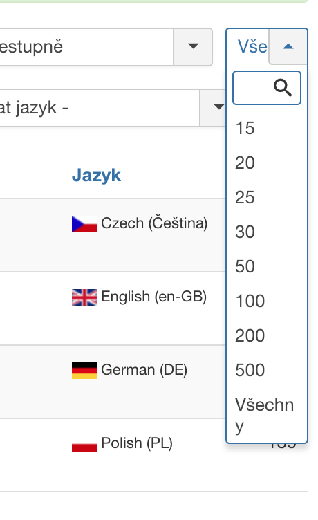 U všech výpisů v adminu, kde si mohu volit počet položek, které chci vidět je úplně dole "Všechny". Bohužel to ale je na dva řádky a Y je zvlášť. Toto asi není problém vysloveně českého pekladu, ale blbě to vypadá. Testováno na MAC v Safari/Chrome.