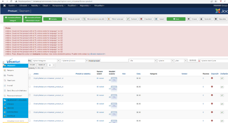 Instalace češtiny do Joomla 3.10.5 a Virtuemart 3.0.7.4 - nefunkční veřejná část