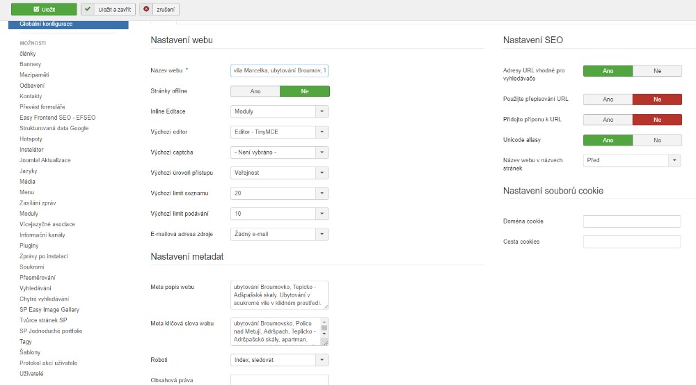 Do Keywords stránek a do description stránek si naroubujte také ty požadované řetězce "Ubytování Broumov" a "Vila Marcelka"!