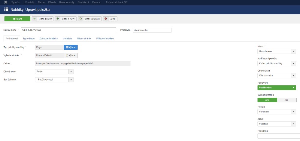 Potom v každé položce menu máte záložku Zobrazení stránky. Jsou tam volby: