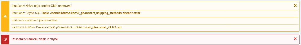 Hlásím: Když chci nahrát vzorová data. com_phocacart_demo_data_j4.zip - hlásí mi Joomla 4.2.9 instalátor chybu: