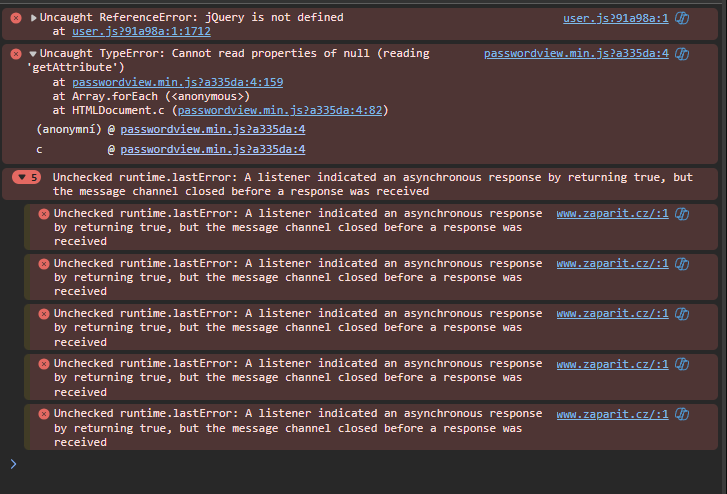 konzole mi vypsala 2 chyby, ale o moc moudřejší z toho nejsem.