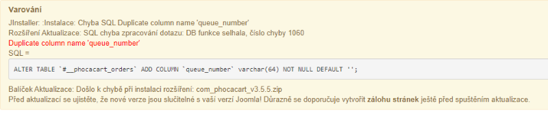 JInstaller: :Instalace: Chyba SQL Duplicate column name 'queue_number'