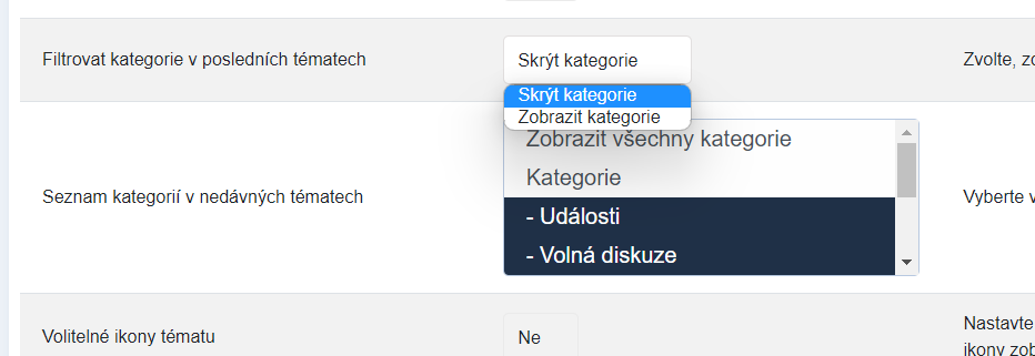 "Seznam kategorií v nedávných tématech" a nad ní je ještě položka, která se k tomu také vztahuje "Filtrovat kategorie v posledních tématech". viz foto níže.