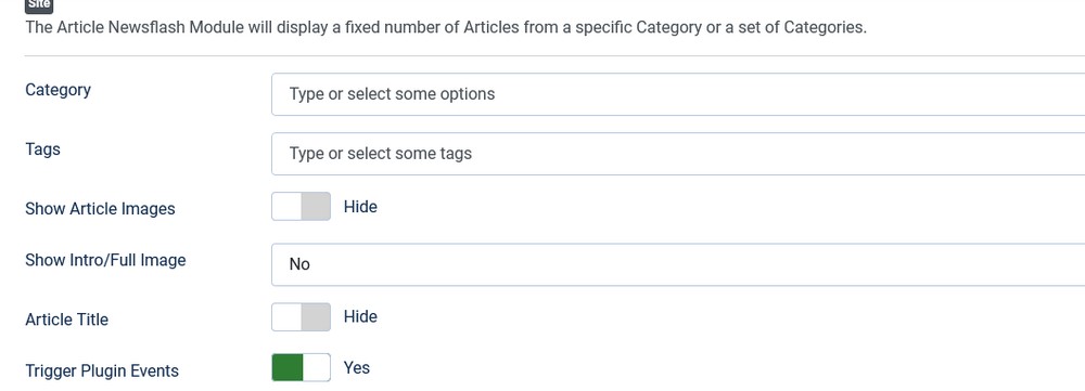 Nepoužíváme modul newsflash, používáme Form2Content pole nebo Core Joomla pole a vlastní moduly a v nich si běžně načítáme další speciální fotky (badge, top info...) a je třeba přesně určit co je hlavní fotka a co ne.