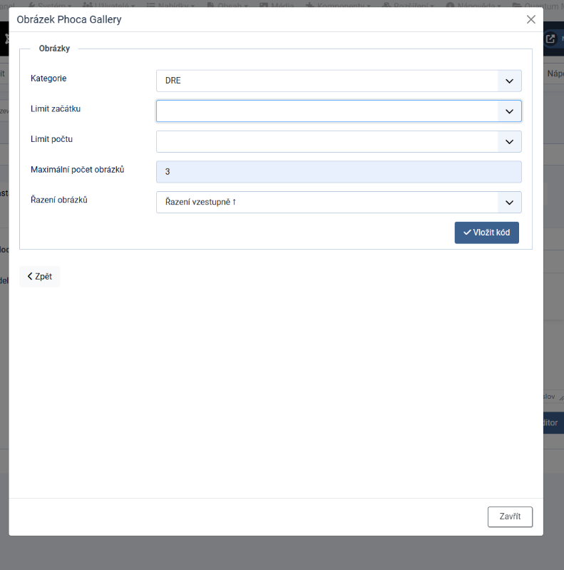 Když chci vložit k produktu kod, který mi vykreslí galerii obrázků, tak nelze vybrat rozsah od do jaké obrázky z kategorie vložit. Viz připojený screenshot.