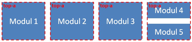 Dobrý den, rád bych poprosil o radu s pozicováním v šabloně Cassiopeia (Joomla 4.4). Mám 5 modulů, které chci umístit do čtyř pozic "top-a" tak aby v jednom z nich byly pod sebou moduly dva, protože jsou výškově nízké. Pokud všech 5 modulů pošlu do pozice "top-a", šablona zobrazí každý modul do jedné pozice, takže jsou všechny vedle sebe. V mých dřívějších šablonách to nebyl problém, ale s logikou tvorby v Cassiopeia nevím jak na to. Na obrázku přikládám o co mi přesně jde.